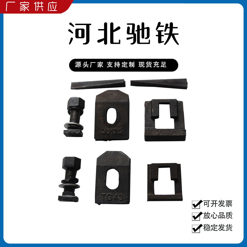 鐵路配件行車配件工礦配件魚尾板道釘壓軌器軌道壓板軌距拉桿護(hù)軌扣板T型螺栓魚尾螺栓彈條鋼軌及加工